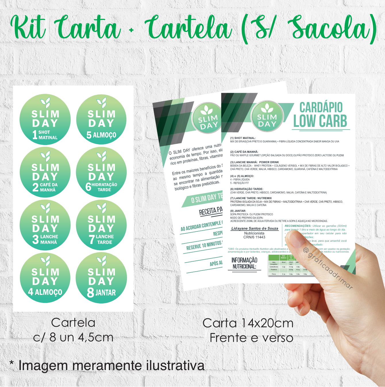 Cada kit acompanha 1 carta nutricional 14x20cm + 1 cartela de adesivos 8 un de 4,5cm