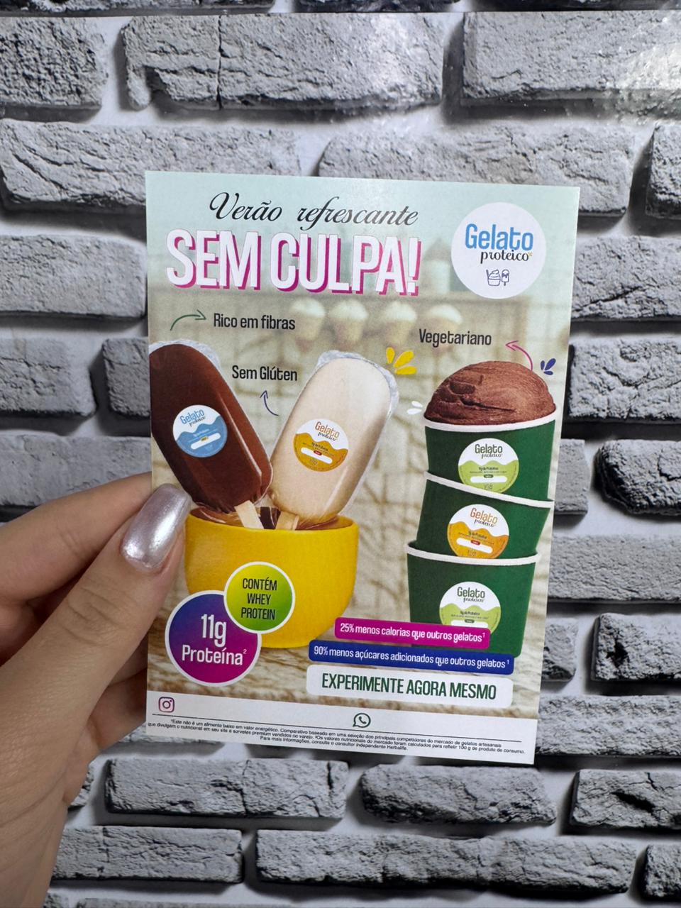Panfletos em couche 90g para divulgação do gelato proteico!